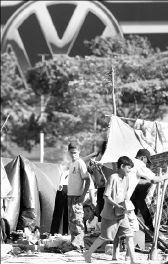 Niños brasileños juegan frente a oficinas de Volkswagen. La empresa anunció que dejará sin empleo a 4 mil trabajadores en Brasil FOTO AFP