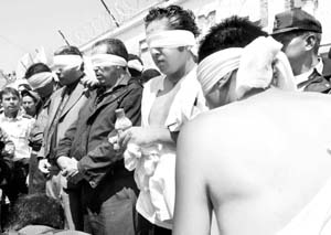 Unos 300 colonos de la colonia Buena Vista retuvieron por más de 10 horas a cinco personas a las que amenazaban con linchar, tras detenerlas en la madrugada cuando supuestamente pretendían asaltar una vivienda. La procuraduría mexiquense informó que finalmente fueron entregados los sujetos y que tres de ellos se hicieron pasar por empleados del Ministerio Público FOTO JESUS VILLASECA