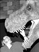 T-REX ƑASESINO?  El paleontólogo Jack Horner observa un modelo de tiranosaurio rex que se presenta en la exposición T-Rex: el asesino cuestionado, que se abre al público hoy en Londres. La muestra pretende cambiar algunos mitos sobre el animal FOTO REUTERS