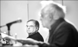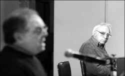 Carlos Monsiváis y José Luis Ibáñez ayer en