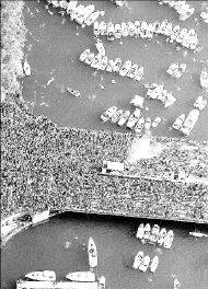 ZURICH SUPERO A BERLIN  Vista aérea de un puente sobre el lago Zurich, en Suiza, donde casi un millón de personas con coloridas ropas se dio cita para bailar al ritmo de la música electrónica en el Desfile de la Calle. Pese al agobiante calor, el ánimo de los participantes no decayó, logrando arrebatarle el título de la mejor fiesta electrónica de verano al Desfile del Amor, que se celebró en julio en Berlín FOTO REUTERS