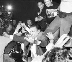 personas agredieron a los reporteros, tanto desde arriba del escenario,