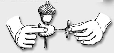 mano se sostiene la bellota inferior, con la otra se jala el hilo, lo que