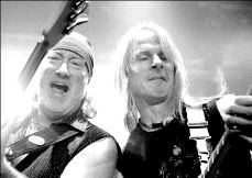 BANANAS DE DEEP PURPLE  Roger Glover (izq.) y Steve Morse, integrantes de la banda de rock británica Deep Purple, durante su concierto del miércoles en Berlín, donde se encuentran para presentar su más reciente álbum, titulado Bananas FOTO AFP