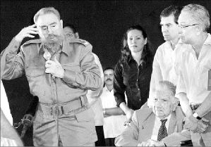 "TODO LE SALE MAL A EU": FIDEL CASTRO  El presidente de Cuba, Fidel Castro, dijo que "todo le ha salido mal a Estados Unidos", al referirse a los planes de Washington de realizar transmisiones de televisión vía satélite hacia la isla. El gobernante desestimó el anuncio estadunidense de que se evitará la interferencia cubana a las señales de radio y la televisora Martí, durante la presentación de tres libros del escritor paraguayo Augusto Roa Bastos (sentado) la noche del viernes en La Habana FOTO AFP