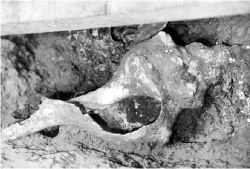 huesosTEOTI_OKLa tumba fue localizada más o menos en la mitad vertical de la pirámide -no a nivel del piso, donde se encontraron los otros entierros. Se trata de una fosa de seis por seis metros, con una profundidad de cuatro. Tuvieron que meterse estructuras de metal para cimentar las excavaciones, porque se trató de un hueco muy grande. Probablemente se construyó cuando se pensaba abandonar el edificio 5 o al iniciar la edificación del edificio 6, alrededor del año 350 dC. (Hace una semana Rubén Cabrera explicó las características de las siete etapas constructivas de la pirámide de la Luna.)