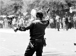 2001/23 de marzo. Operativo realizado por policías judiciales capitalinos para detener a María Rosete, lideresa del comercio ambulante, lo cual originó un enfrentamiento entre comerciantes y policías judiciales y preventivos. El resultado fue un joven de 16 años muerto. Se necesitó el apoyo de granaderos, policía montada, especial metropolitana y Fuerza de Tarea.
