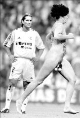 Un espontáneo cruzó la cancha del Santiago Bernabéu durante el encuentro entre Real Madrid y Betis del balompié español FOTO AFP
