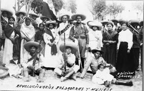 Aunque en su mayoría anónimas, las soldaderas fueron un pilar esencial para que la Revolución alcanzara los resultados que dan vida a parte del México de hoy. Hay que imaginar las circunstancias en las que se desenvolvían estas mujeres para valorar sus aportaciones. Las fotografías de la época las muestran con sus rebozos, largas faldas y blusas de holanes, caminando en grupos con niños y fardos, hacinadas en un vagón de ferrocarril, acampadas preparando comida, abrazadas con sus esposos o compañeros. Frecuentemente se desplazaban en compañía de sus hijos pequeños; seguramente los hijos mayores de un buen número de familias, participaban con sus padres en el frente de batalla.