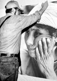 Un participante del Foro Internacional Campesino e Indígena, que se realiza en la ciudad de Cancún, coloca propaganda del encuentro. En un comunicado, el subcomandante Marcos señaló que el movimiento mundial contra la "globalización de la muerte y destrucción" tiene una de sus expresiones más brillantes en esta zona. La quinta conferencia ministerial de la Organización Mundial de Comercio dará comienzo hoy en el centro turístico y, según analistas, hay pocas posibilidades de acuerdo en materia agrícola, uno de los principales temas de discusión FOTO JESUS VILLASECA