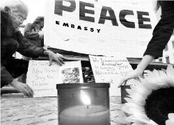 de algunos de los 853 viudos y viudas. Miles rodearon el sitio durante