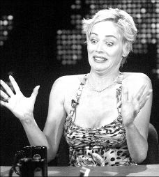 La actriz Sharon Stone gesticula y describe el miedo que sintió cuando pasó un día en cama con una boa constrictor, durante la filmación de su nueva cinta Cold Creek Manor. Stone hizo la explicación durante el programa televisivo Larry King Live, donde además comentó sobre su nueva vida de soltera, así como el acercamiento que tuvo con la muerte cuando se le detectó una hemorragia cerebral, hace dos años FOTO REUTERS