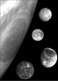 Después de ocho años orbitando Júpiter, la sonda espacial Galileo terminará su larga misión el próximo domingo, cuando el aparato sea enviado hacia ese planeta para desintegrarse en su atmósfera. Los científicos confían en que Galileo continuará enviando datos hasta unos cinco minutos antes de la colisión, la cual se programó porque la sonda está a punto de quedarse sin combustible; al apagarse el motor podría desviar su rumbo hacia la luna Europa, donde fue descubierto un océano subterráneo, hecho que despierta esperanzas de encontrar alguna forma de vida. En la imagen, una composición del sistema joviano FOTO REUTERS