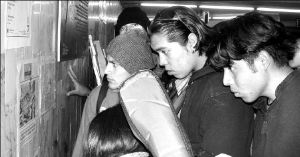 HOMENAJE A ROCKDRIGO EN EL METRO BALDERAS  Un grupo de jóvenes observa la información sobre Rockdrigo, publicada en La Jornada, durante el homenaje que se le rindió ayer al Profeta del Nopal en la estación del Metro Balderas, a 18 años de su muerte FOTO CHAVA ROCK