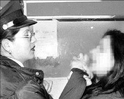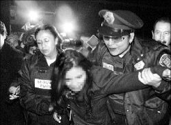 A bordo del Pointer, sin zapatos y con un tubo de pasta dental en las manos -que intentó utilizar para mejorar su aliento-, la joven, al tiempo que se cubría de las cámaras fotográficas y de televisión, recordaba su condición de "ser humano; soy una mujer, ¿entienden eso?, no tienen por qué tratarme como lo hacen". Finalmente fue bajada a la fuerza por mujeres policías y trasladada al juzgado cívico quinto, de la delegación Cuauhtémoc en una patrulla, mientras su auto fue arrastrado por la grúa GR761.