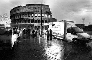 Casi todo el país europeo, excepto Cerdeña, sufrió las consecuencias de la falla. Miles de personas quedaron varadas en el Metro y el sistema de trenes y los aeropuertos padecieron numerosos retrasos en sus vuelos. Recientemente, el primer ministro Silvio Berlusconi declaró que los cortes de energía que ocurrieron en Estados Unidos y Canadá nunca pasarían en la península. En la imagen, la penumbra frente al Coliseo romano FOTO REUTERS