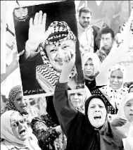 Ramallah, 29 de septiembre. Unos 3 mil palestinos salieron este lunes a las calles de Ramallah, Cisjordania, al continuar las conmemoraciones por los tres años de intifada, y para manifestar su apoyo al presidente de la Autoridad Nacional Palestina (ANP), Yasser Arafat.