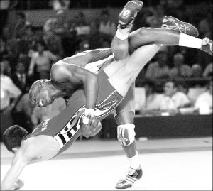 El cubano Lázaro Rivas castiga a Uran Kalilov, de Kazajstán, en Creteil, cerca de París FOTO AFP