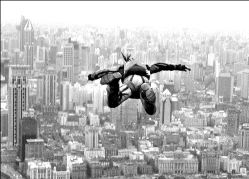 VUELO EN SHANGHAI  Un saltador de base fija se precipita sobre Shanghai desde el edificio Jim Mao. Quince personas de diversas nacionalidades efectuaron el brinco desde una altura de 420.5 metros, como parte de la semana de celebraciones por el 54 aniversario de la fundación de la República Popular de China FOTO REUTERS