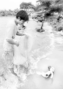 Al menos 68 poblados de las dos entidades fueron severamente afectados por el paso de la tormenta tropical. Protección Civil reportó una persona muerta y decenas de damnificados. Las autoridades mantuvieron la alerta ante el movimiento de los huracanes Olaf, frente a las costas de Colima, y Nora, cercano a Baja California. En la imagen, un pescador de Nanchitán, Veracruz, recupera sus redes. FOTO FRANCISCO OLVERA