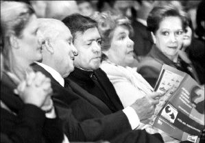 ENCUENTRO EN REFORMA  El presidente de Bimbo, Lorenzo Servitje, y el cardenal Norberto Rivera durante la inaguración del segundo Congreso Internacional A Favor de lo Mejor en los Medios de Comunicación, en el Auditorio Nacional FOTO CRISTINA RODRIGUEZ