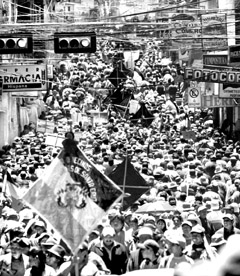 "¡Que Goni (Gonzalo Sánchez de Lozada) se vaya!", gritaron miles de personas en la multitudinaria marcha ayer en La Paz. Pese a las movilizaciones en esta y otras ciudades, el mandatario insistió en que no renunciará y calificó de "terroristas" a los líderes de la oposición FOTO REUTERS