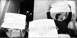 colonos, quienes se apostaron afuera de las instalaciones del máximo