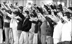 Jerónimo Juárez, dirigente del comité estudiantil, advirtió: "No va a ser tan fácil desaparecer la institución. No nos intimidan las amenazas". En seguida entonaron el himno de los normalistas rurales y el tradicional Venceremos, que se ha vuelto un grito de lucha del magisterio disidente.