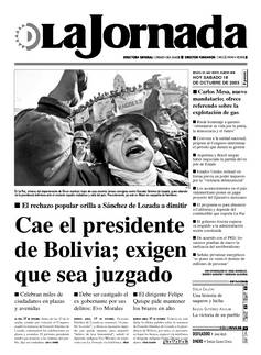 Buenos Aires, 17 de octubre. Gonzalo Sánchez de Lozada no renunció, "el pueblo lo corrió", y ahora es necesario impedir que quede impune, pues perpetró "delitos de lesa humanidad", señaló el diputado indígena Evo Morales en entrevista con La Jornada vía telefónica.