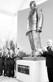 Una estatua del general Lázaro Cárdenas fue develada ayer en la sede del PRI; sin embargo, ni Roberto Madrazo ni Elba Esther Gordillo acudieron. Los asistentes dijeron que el acto era para ``reconciliar'' al tricolor con las corrientes nacionalistas del país FOTO CARLOS RAMOS MAMAHUA
