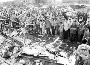 En una jornada de creciente violencia, tres soldados estadunidenses perdieron la vida tras dos ataques en la ciudades de Samarra y Mosul, con lo que suman ya 108 los militares caídos por fuego hostil desde el pasado primero de mayo. En la imagen, un grupo de bagdadíes miran los escombros que dejaron las explosiones de granadas de morteros que fueron lanzadas por desconocidos sobre el barrio de Al Durra y que ocasionaron la muerte de dos iraquíes y dejaron heridos a otros siete FOTO AFP