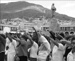 La respuesta mayoritaria fue de rechazo al ofrecimiento; fue entonces cuando se sugirió "llevar el movimiento a los ámbitos nacional e internacional", y por unanimidad se aceptó preparar una marcha al Distrito Federal y denunciar el conflicto ante organismos internacionales.