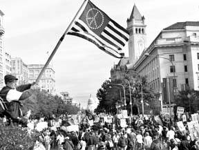 Miles de personas marcharon ayer en la capital de Estados Unidos para expresar su rechazo a la guerra contra el país asiático, demandar el retorno de las tropas y protestar por los ataques contra las libertades civiles después de los atentados terroristas del 11 de septiembre. En la manifestación, el ex procurador Ramsey Clark declaró: "El presidente George W. Bush nos ha convertido en un país fuera de la ley a escala internacional" FOTO REUTERS