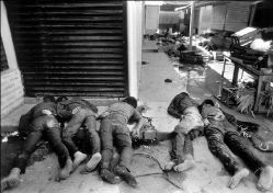 Finalizada la presentación de Zapatistas... se apagaron las luces y se inició la primera exhibición pública en Madrid, sus imágenes provocaron en ocasiones la indignación, la risa sarcástica o el estupor y el llanto, como sucedió cuando vieron las imágenes de algunos niños indígenas chiapanecos tiritando de frío bajo la lluvia, desplazados de sus casas y acosados por los miles de efectivos del Ejército mexicano desplegados en la zona, o en el momento en que se narró el asesinato masivo de Acteal cometido por paramilitares en connivencia con los militares y la policía estatal.