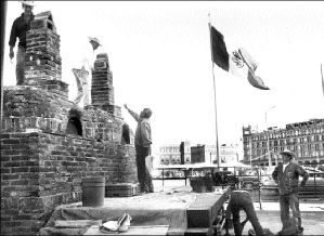 CIUDAD DE LOS PALACIOS  Preparativos en el Zócalo para la ofrenda de muertos. En la imagen, armado de un horno FOTO YAZMIN ORTEGA CORTES