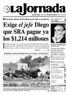 La nave fue abatida por un misil lanzado por la resistencia cuando sobrevolaba la ciudad de Fallujah, 50 kilómetros al oeste de Bagdad; otros 21 soldados resultaron heridos. El jefe del Pentágono, Donald Rumsfeld, calificó el ataque de "trágico día" para su país, pero advirtió que no saldrán de la zona. En otros dos incidentes, tres estadunidenses perecieron por estallidos de bombas FOTO AFP