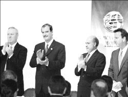 Más tarde, al inaugurar la Convención Nacional de la American Chamber México, el presidente Fox hizo un llamado al sector público y empresarios de los tres países del Tratado de Libre Comercio de América del Norte (TLCAN) a ''cerrar filas para enfrentar la competencia, no siempre leal, de otras naciones que colocan productos en nuestros mercados sin ofrecer reciprocidad a cambio'', así como buscar ''las asociaciones, las alianzas que permitan a nuestros países alcanzar un alto grado de competitividad, crecimiento económico y estabilidad''.