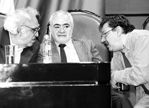Carlos Monsiváis, Ignacio Solares y Paco Ignacio Taibo II acudieron junto con un numeroso grupo de intelectuales a la Cámara de Diputados para rechazar "la nueva carga fiscal criminal" contra la cultura. El paquete hacendario, expresaron, "intenta convertir al gobierno mexicano en gerencia y a los ciudadanos en simples activos fijos". Mientras, se intensificaron los actos en repudio a la iniciativa para desincorporar al Imcine, los Estudios Churubusco y el Centro de Capacitación Cinematográfica. Este jueves se realizará una manifestación frente a San Lázaro FOTO FRANCISCO OLVERA