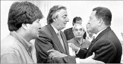 y, por fin, con camisa roja y sombrero de campesino llanero, Hugo Chávez,