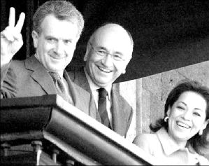 DESDE UN BALCON  El secretario de Gobernación, Santiago Creel; el director de la Compañía de Luz y Fuerza del Centro, Luis de Pablo Serna y la secretaria de Desarrollo Social, Josefina Vázquez Mota, presenciaron el desfile del 20 de noviembre desde un balcón de Palacio Nacional FOTO GUILLERMO SOLOGUREN