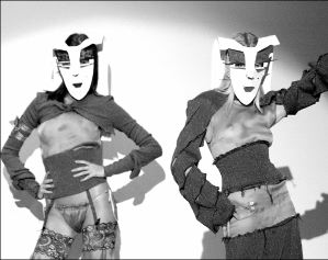 Dos modelos presentan sendas creaciones de la diseñadora rusa Natasha Drigant, durante la Semana de la Alta Moda, en Moscú FOTO AFP