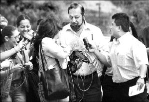 SLIM EN CHIAPAS  Carlos Slim es asediado por reporteros durante su visita a Tuxtla Gutiérrez, Chiapas. Este lunes se puso en marcha el cajero automático denominado Gobierno Express, donde se podrán hacer 18 trámites gubernamentales FOTO VICTOR CAMACHO