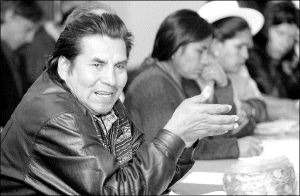 Felipe Quispe, aymara, uno de los dirigentes de la Confederación Sindical Unica de Trabajadores Campesinos de Bolivia y del Movimiento Indio Pachacutik, así como diputado y ex candidato a la presidencia, describió la grave situación de racismo en su país, en el que 80 por ciento de la población es indígena, lo cual explica el sentido de sus reivindicaciones como tales.
