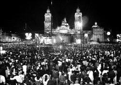 Familias enteras, para defenderse, hicieron pequeños círculos. Pero llegaron más de ellos. Cinco mil, 10 mil, 20 mil, 30 mil, 40 mil, 50 mil... A eso de las seis de la tarde la cosa estaba pesada. Los puntos del Zócalo estaban convertidos en trincheras. Yo de aquí no me muevo. Yo tampoco. Ya llevo más de nueve horas. Aguanté el frío y el calor. Son las siete de la noche y ya son como 60 mil. Se escuchan ruidos, pruebas de sonido. Para apaciguar los ánimos de desesperados, suben Gus y Los Extremos, con sus rolas afroveracruzanas, como las definió él.