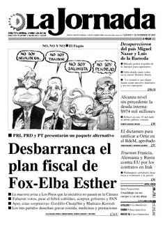 Desbarranca el plan fiscal de Fox-Elba Esther