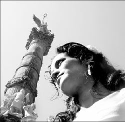 felices al Angel de la Independencia. El la carga y sube las escaleras,