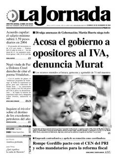 El gobernador de Oaxaca protestó contra lo que llamó "represalias" de Bucareli por su negativa a avalar el IVA; el líder del PRI, Roberto Madrazo, apoyó la inconformidad e insinuó que pronto llegarán maestros de aquel estado, supuestos afectados, a manifestarse en el DF. A su vez, Ramón Martín Huerta, subsecretario de Gobernación, negó todo y aclaró que las auditorías a la gestión de José Murat "no son tantas" FOTO JULIO REYNA QUIROZ
