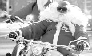 Motociclistas disfrazados de Santaclós pasean frente al salón Brandeburgo, en Berlín FOTO AFP