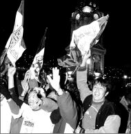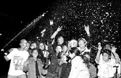 Pachuca, Hgo. 21 de diciembre. Miles de eufóricos aficionados se volcaron a las principales calles de la ciudad y se concentraron en la plaza Independencia para festejar el título del torneo Apertura 2003 logrado por los Tuzos del Pachuca, quienes derrotaron en la gran final a los Tigres de la UANL.