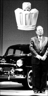 REGRESO DE UN CLASICO  El presidente de la firma automotriz japonesa Toyota, al lado de un Crown 1955, primer sedán de lujo de la compañía, anunció el relanzamiento de este modelo, con lo que buscarán capturar las preferencias de los consumidores FOTO REUTERS
